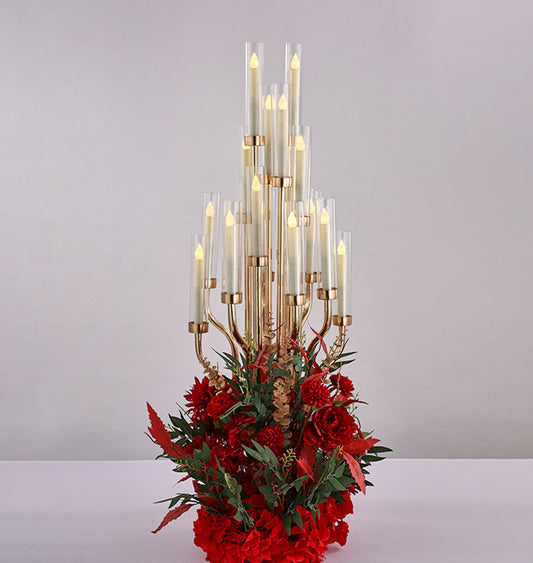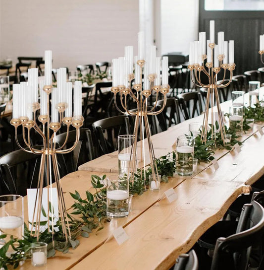 • Uniquelina 16 Arms Glass Candle Stick Wedding Decoration Metal Gold Candelabra Centerpiece Table Centerpieces for wedding