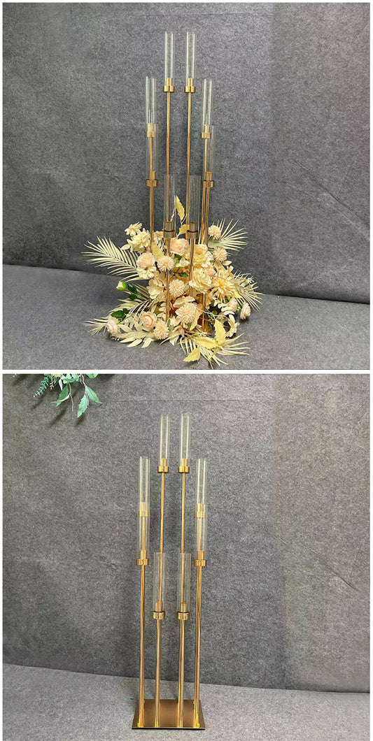 • Uniquelina 10 Arms Tall Candelabra Metal Candle Stick Holder Gold Walkway Candelabra For Wedding Table Decoration