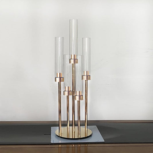 • Uniquelina Floor Candle Holders for Wedding,Metal 5 Arms Candelabra for Table Centerpiece Gold Candle Sticks Holder Decor with Clear Acrylic Shade for Easter day Party, Banquet, Birthday (48inch)