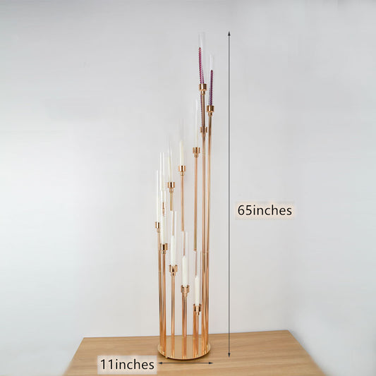 • Uniquelina Floor Candelabra 16 Arm 48'' Tall Candle Holder, Candelabra Centerpieces for Tables, Metal Candlestick Set with Acrylic Lampshade for Wedding Party Home Decoration (Gold)