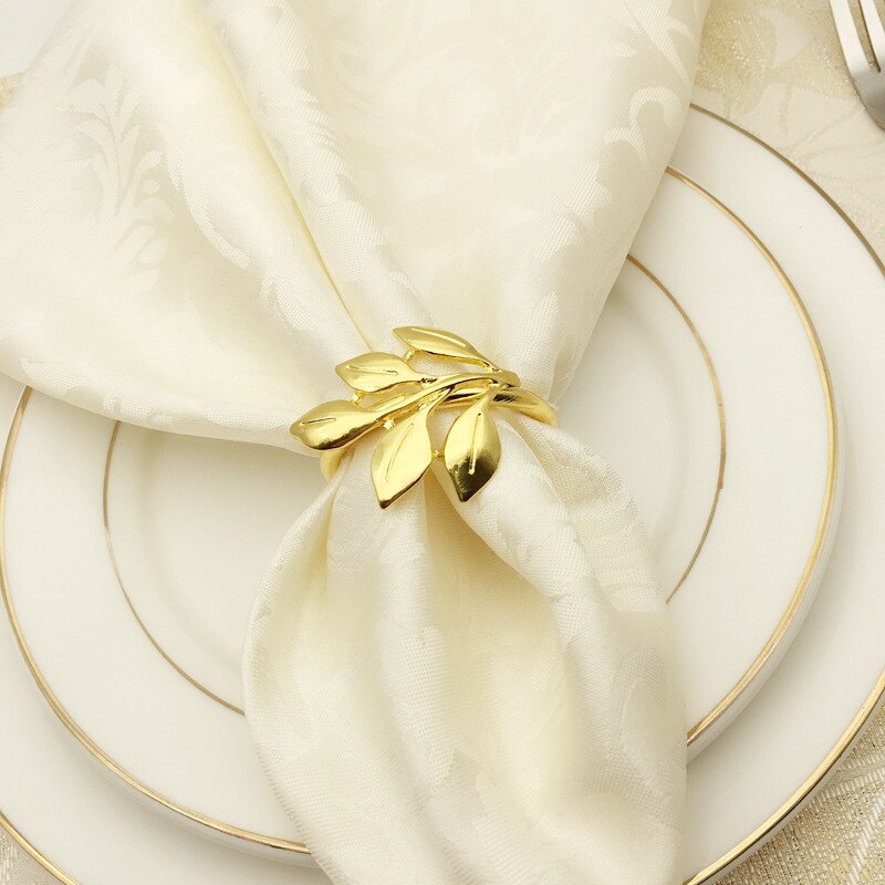 Anneaux de serviette en forme de feuilles d'automne, 6 pièces/lot, bracelet de baptême en or et argent, porte-serviettes en métal, cadeaux de mariage, décor de fête de baptême