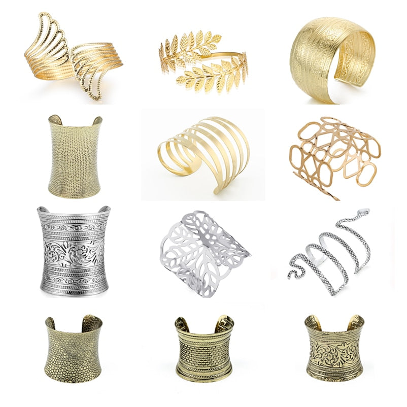Dayoff 30 Styles European Punk Big Wide Cuff Bracelet for Women Men Open Ajustable Carved Flower Snake Animal Bangle Jewelry