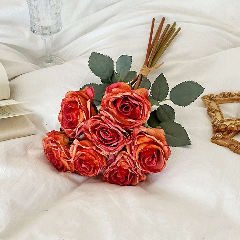 Uniquelina Indabyo Yubukorikori Muburabyo bwa Roza Indabyo Impimbano Indabyo Zihimbano hamwe na Ceramics Vase Imitako kumeza Urugo Ibiro Byubukwe
